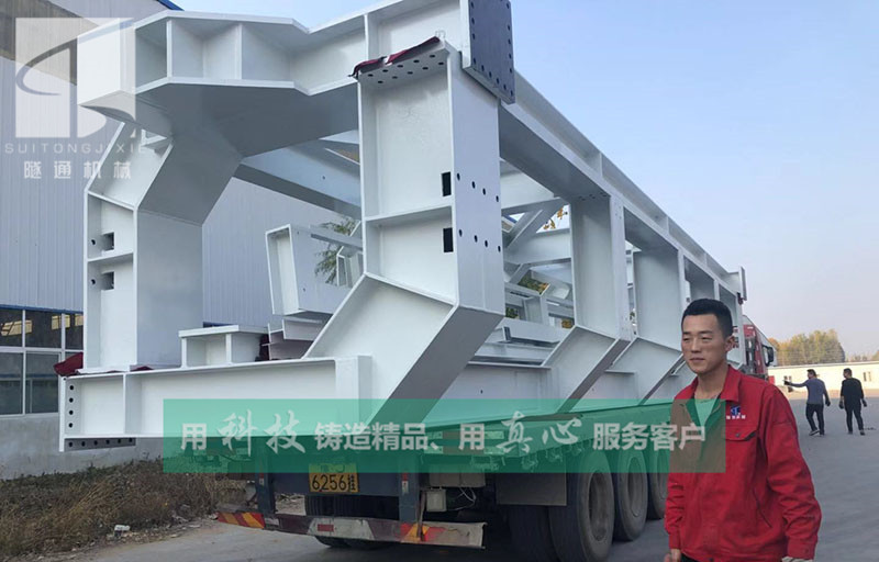 使用盾構(gòu)機(jī)挖掘隧道時(shí),盾構(gòu)機(jī)的主機(jī)用于在隧道前方挖掘掌子面上的泥土,盾構(gòu)機(jī)主機(jī)的后端牽拉有后配套拖車(chē),后配套拖車(chē)包括多節(jié)車(chē)廂,每一節(jié)車(chē)廂稱(chēng)為一個(gè)臺(tái)車(chē),盾構(gòu)機(jī)后配套拖車(chē)用于承載盾構(gòu)機(jī)主機(jī)的控制系統(tǒng)等配套設(shè)備,盾構(gòu)機(jī)后配套拖車(chē)設(shè)有“門(mén)”字形通道,用于供沿隧道通行的編組列車(chē)穿過(guò)“門(mén)”字形通道直接到達(dá)盾構(gòu)機(jī)主機(jī)的后端,編組列車(chē)能將盾構(gòu)機(jī)主機(jī)挖掘隧道時(shí)產(chǎn)生的泥漿、沙礫、卵石等各種類(lèi)型的渣土運(yùn)送到隧道外,并可兼顧把管片、背襯漿料等各種材料運(yùn)進(jìn)隧道內(nèi)。